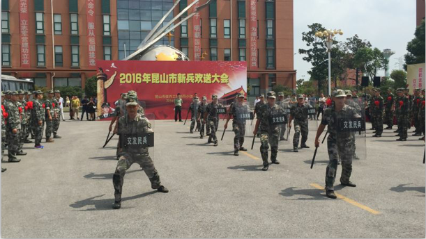 據(jù)悉,此次昆山市共有273名新兵入伍,參加本次歡送會的新兵共有100名。在歡送會中,公司民兵訓(xùn)導(dǎo)中隊為新兵們帶來了擒敵拳、警棍盾牌操等表演,隊員們精彩的表演贏得了現(xiàn)場陣陣掌聲。昆山市人武部殷珊奇部長在會后對訓(xùn)導(dǎo)中隊的表現(xiàn)特別作出了表揚及肯定,并希望民兵訓(xùn)導(dǎo)中隊能繼續(xù)保持良好的精神風貌,爭做昆山民兵中的特種隊伍。