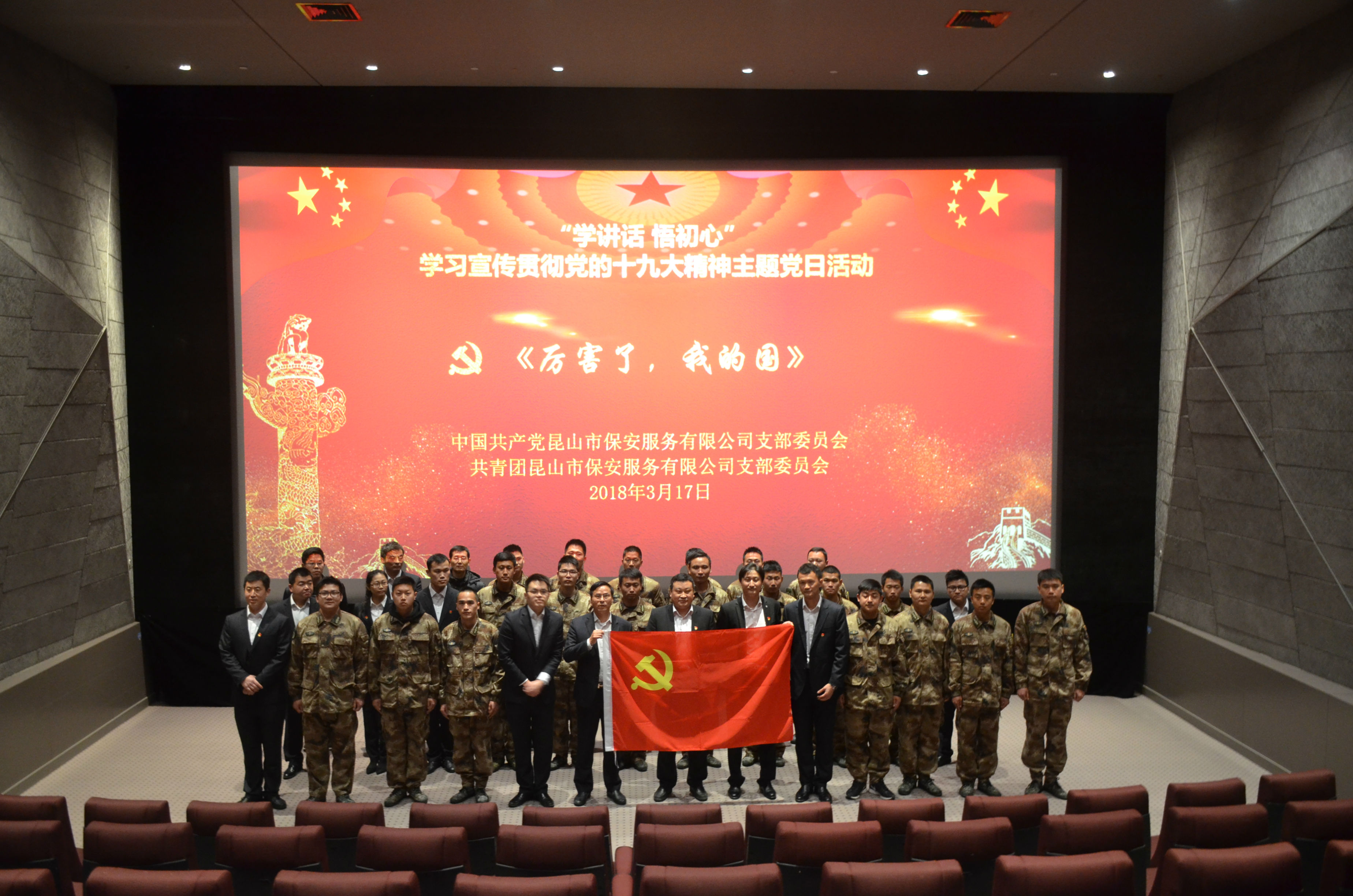 為深入貫徹落實(shí)黨的十九大精神,豐富支部主題黨日活動(dòng)形式,3月17日,保安公司組織公司全體黨員、入黨積極分子、民兵訓(xùn)導(dǎo)員集中觀看電影《厲害了,我的國》。