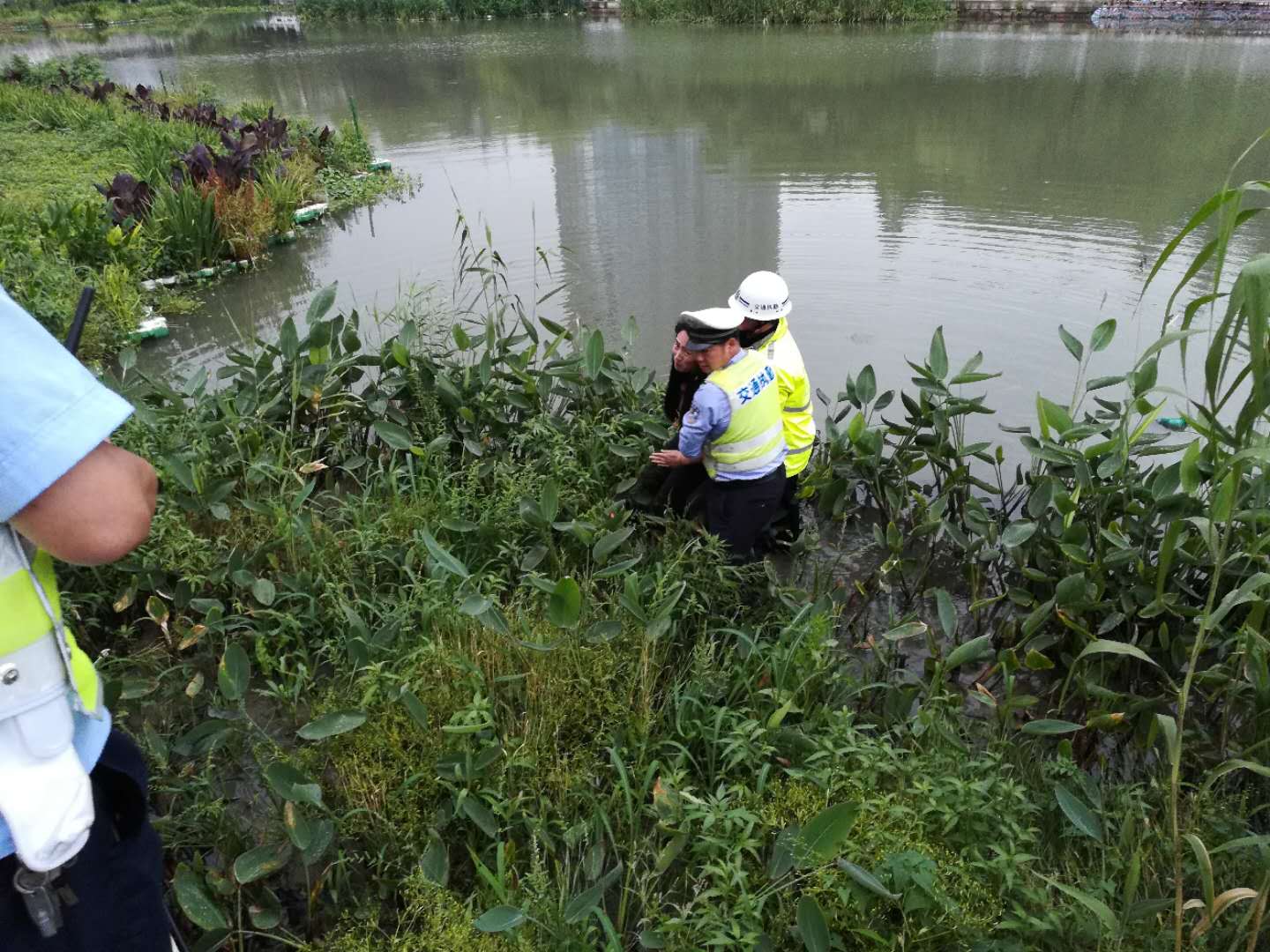 5月25日下午4點(diǎn)15分左右,保安公司道路交通指揮人員在執(zhí)勤過程中,接到指揮對(duì)講機(jī)通知,在同豐橋北側(cè)有一女子欲跳河輕生。當(dāng)班隊(duì)長(zhǎng)立即帶領(lǐng)三名水性較好隊(duì)員前往現(xiàn)場(chǎng)救援。抵達(dá)現(xiàn)場(chǎng)后,該女子已經(jīng)跳入水中,情況十分緊急,隊(duì)員葉子濤、周長(zhǎng)豐在隊(duì)長(zhǎng)的指揮下,立即下水開展救援行動(dòng),經(jīng)過不懈努力,成功將輕生女子拉至岸邊。隊(duì)長(zhǎng)鄭春明為防止此女子再度跳河,耐心的對(duì)她做思想工作,直至交警趕到現(xiàn)場(chǎng)將她帶走才離開。