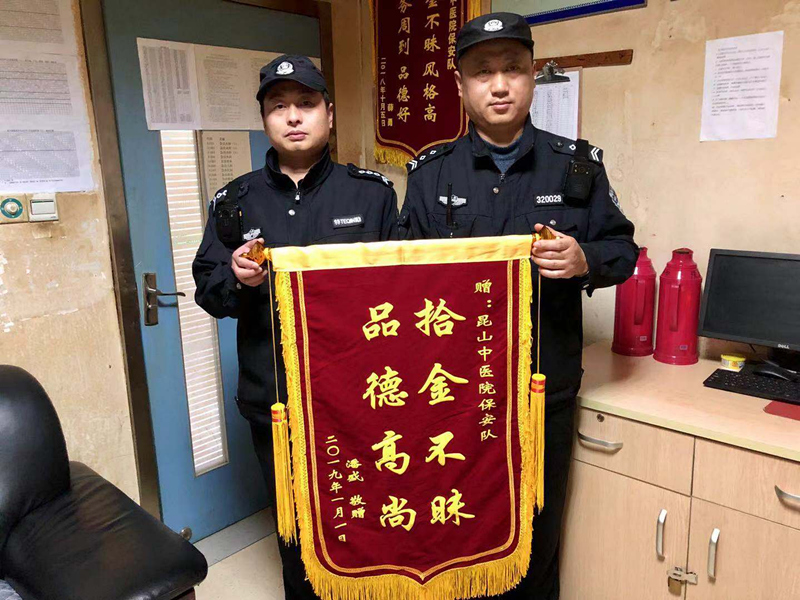 近日,保安公司中醫(yī)院安保隊(duì)收到一面印有“拾金不昧、品德高尚”的錦旗,感謝隊(duì)員黃興漢拾金不昧,幫助失主避免財(cái)產(chǎn)損失。