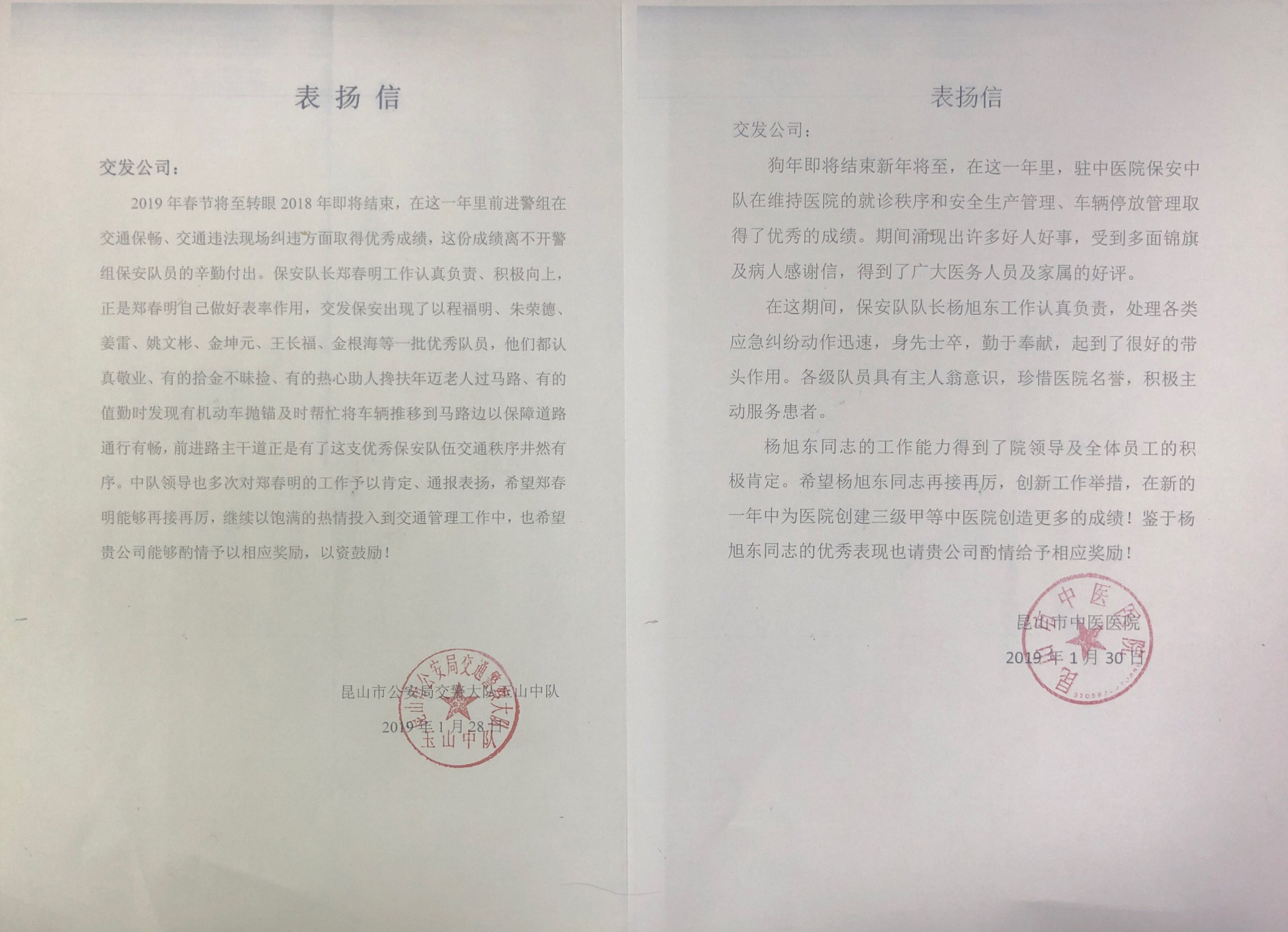 近日,保安公司收到多封來自醫(yī)療系統(tǒng)、交通協(xié)管系統(tǒng)等客戶單位的表揚(yáng)信,對保安公司各駐點(diǎn)隊(duì)員2018年度工作給予充分肯定和高度的贊揚(yáng)。