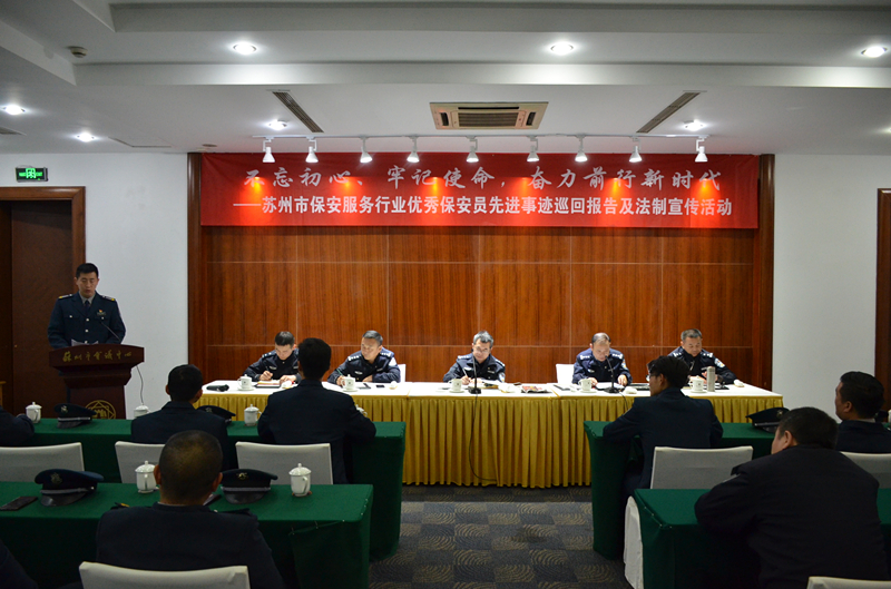 11月20日,“不忘初心、牢記使命,奮力前行新時代”蘇州市保安服務行業(yè)優(yōu)秀保安員先進事跡巡回報告及法制宣傳活動在蘇州市會議中心舉行,保安公司陸軍吉同志參加了此次演講,蘇州治安大隊領導出席了本次活動。