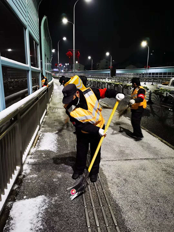 保安公司組織隊員開展市區(qū)路面橋梁除冰雪保通暢工作