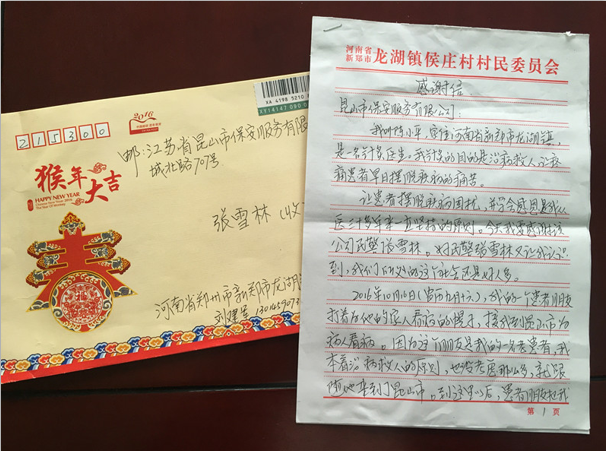 樂于助人 暖人心。2月9日,保安公司收到一封來自河南省新鄭市的表揚信。據(jù)了解,原來是一名河南省的陳姓先生被其朋友騙到昆山,被非法傳銷所控制,陳先生趁傳銷人員不備,逃離至距離最近公交派出所,公司駐公交所的值班保安員張雪林同志第一時間將此事上報至公交所民警處,并親自為陳先生買了回河南新鄭市的車票。